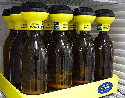 Erfassung der biologischen Abbaubarkeit über den Sauerstoffverbrauch in einem geschlossenen Respirometer.