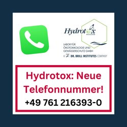 Die Hydrotox Labor für Ökotoxikologie und Gewässerschutz GmbH ist ab sofort unter folgender neuer Telefonnummer erreichbar: +49 761 216393-0. Bitte aktualisieren Sie Ihre Daten entsprechend. Die Durchwahlnummern bleiben unverändert gültig. Unsere Hydrotox-Kollegen in Freiburg freuen sich auf Ihren Anruf. Alle Kontaktdaten der DR. BRILL INSTITUTES-Gruppe finden Sie hier: Kontakt